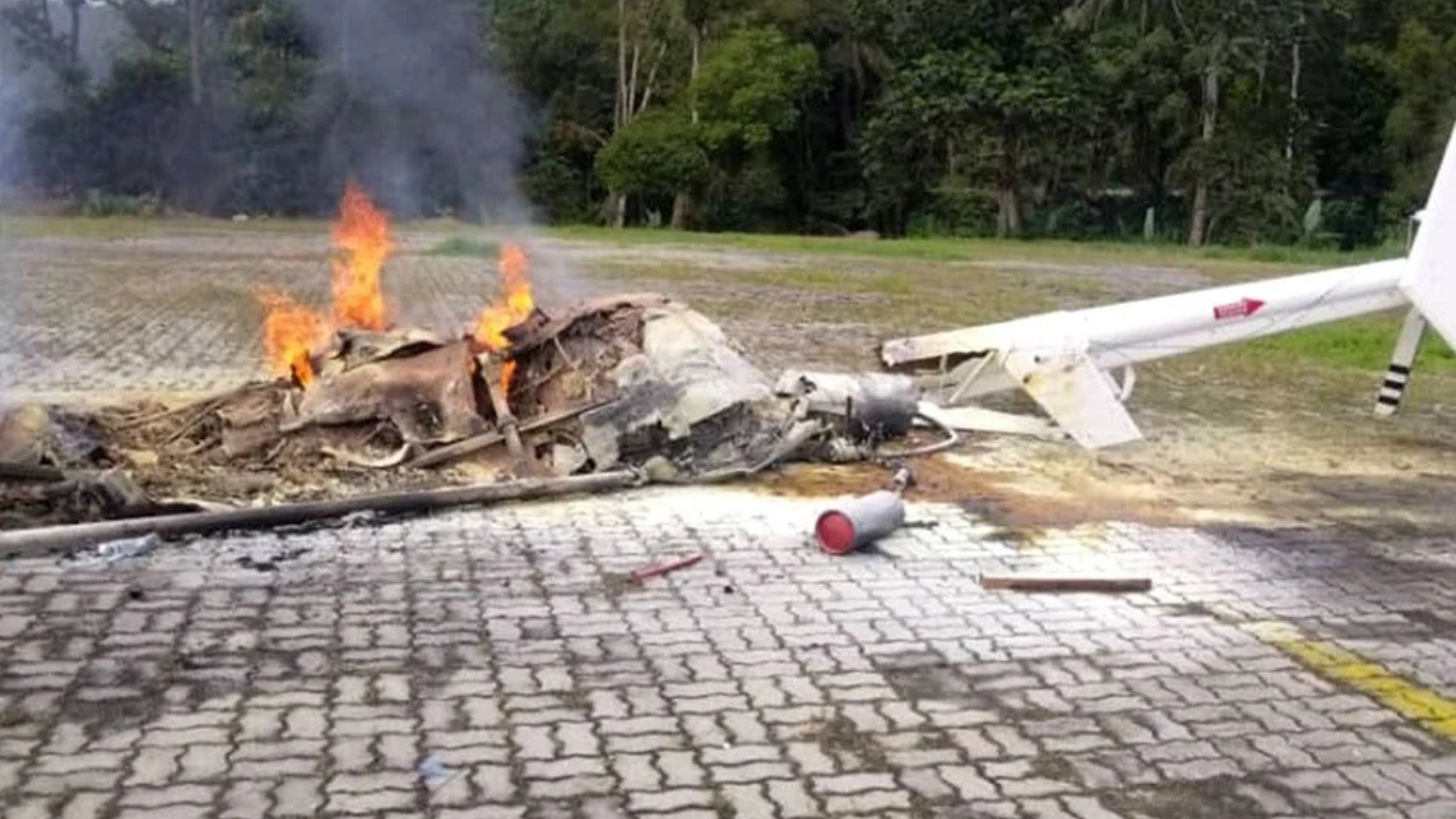 直升机在接近地面约3尺高度时发生擦撞,随即翻覆并起火,导致一名工程师当场身亡。