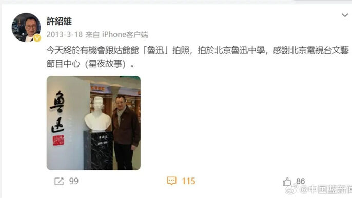 许绍雄出生于名门世家,祖辈与鲁迅有亲缘关系——父亲的姑姑正是鲁迅夫人许广平。但他一生极少提及这层血脉。他说:“那是家族的故事,不是我的。”真正属于他的人生,是在荧幕上那一张张笑脸。他习惯在剧组里照顾新人、帮忙搬道具,从不摆资历。导演叶念琛曾说:“他拍戏没姿态,反而像个邻家叔叔。”他喜欢开玩笑:“演员要像水,可以进任何杯子。”这句朴实的比喻,正是他半世纪演艺生涯的写照。或许正因如此,他能从黑帮老大演到慈父角色,而观众始终信服。